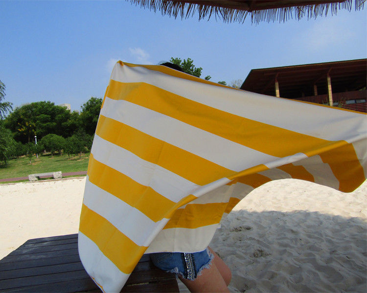 カスタマイズされたブランドの砂自由なMicrofiberは網袋が付いている印刷されたタオルを縞で飾る