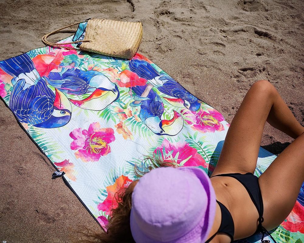 滑らかな表面により、砂が付着しにくくなっています。使用後は、軽く振るだけでほとんどの砂が落ちます。また、きれいな水で洗い流したり、洗濯機で優しく洗ったりして、清潔さを保つこともできます。